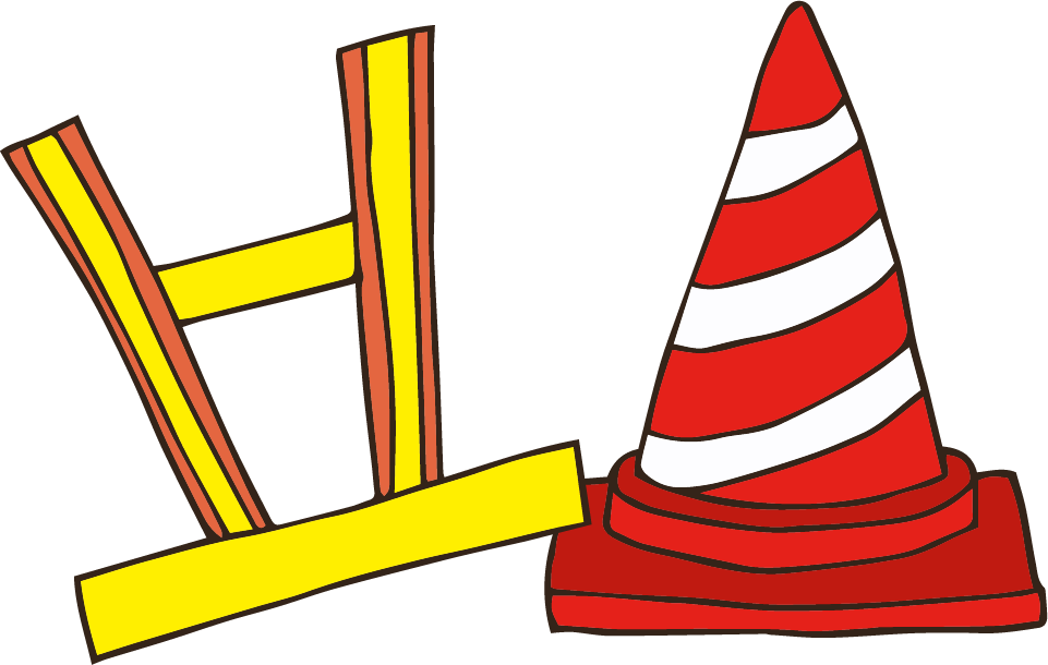 ★誘導灯(赤い点滅する専用棒)、紅白旗(大きさは色々ある赤白の旗)、徐行旗(黄色い旗)、警笛(注意喚起用の笛)、無線機(隊員同士の連絡用)などを活用し、一般車両・工事用車両・歩行者などを誘導します。